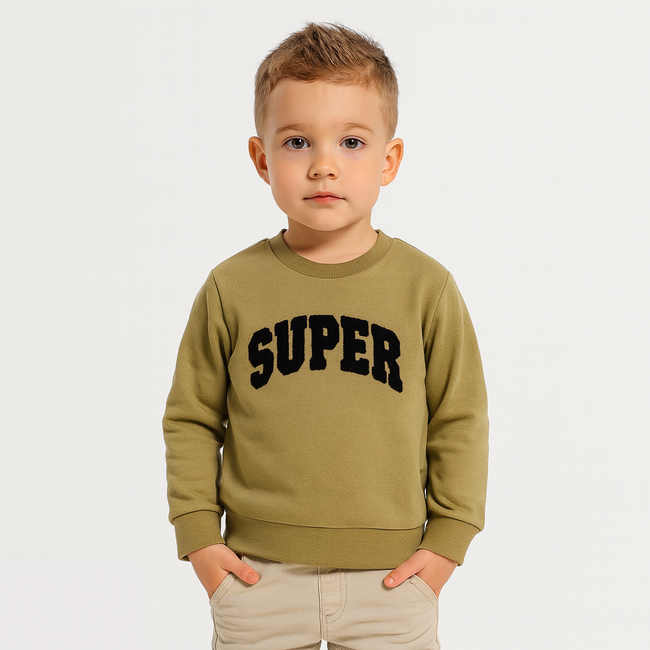 Boys Beige Sweatshirt – "SUPER" Chenille Embroidery | Cotton Fleece