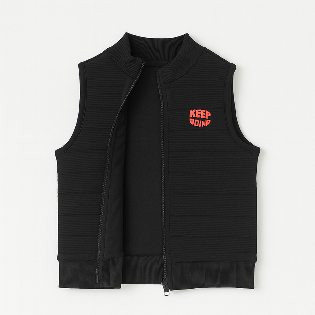 Upgrade your casual style with this Black Sleeveless Zip-Up Vest featuring a modern quilted texture and premium fabric finish. Designed for all-day comfort, this vest comes with: