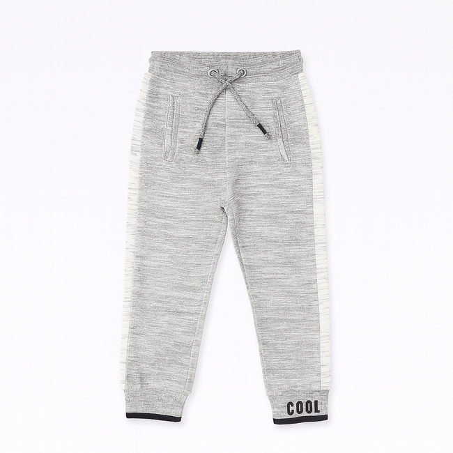 Keep your little one stylish and comfortable with these boys’ grey jogger pants. Designed with a soft heather grey fabric and trendy white side stripes, these joggers feature a drawstring waistband for a secure fit and “COOL” text detail at the cuff for a fun, modern touch.