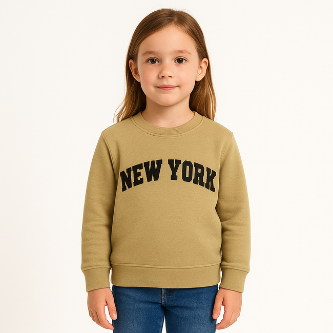 Girl Beige Sweatshirt – "NEW YORK" Embroidery Design