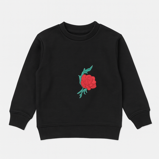 Girl Black Sweatshirt – Red Rose Embroidery | Cotton Fleece