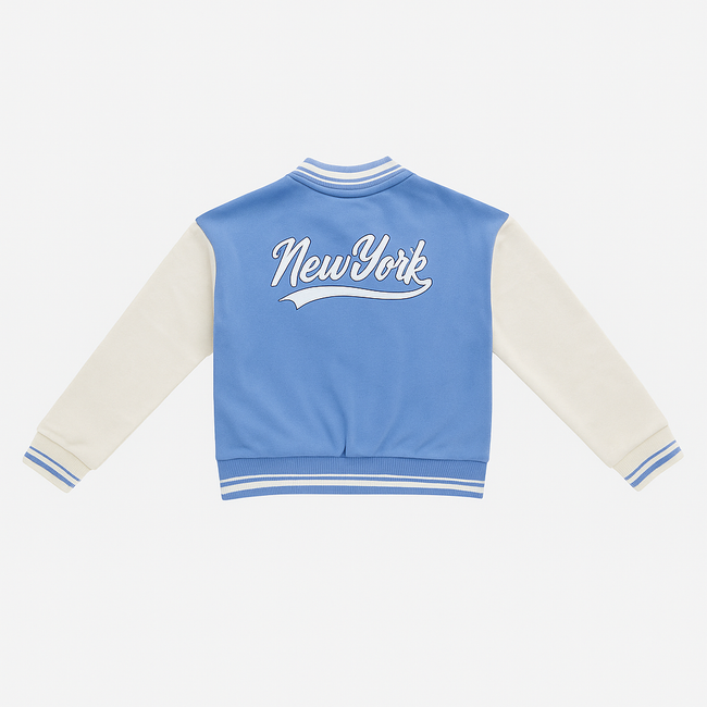 Kids Down Shoulder NY Baseball Varsity Jacket – Blue & White Trendy Look