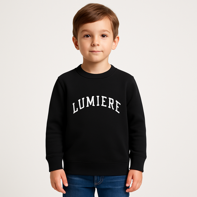 Keep your boy cozy and stylish with this black “LUMIERE” sweatshirt, designed for comfort and everyday wear. Made from soft, breathable fabric, it’s perfect for school, play, or casual outings.