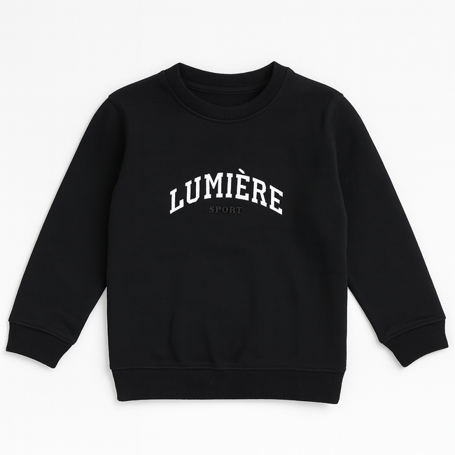 Classic black sweatshirt with bold “LUMIERE” text Embroidery