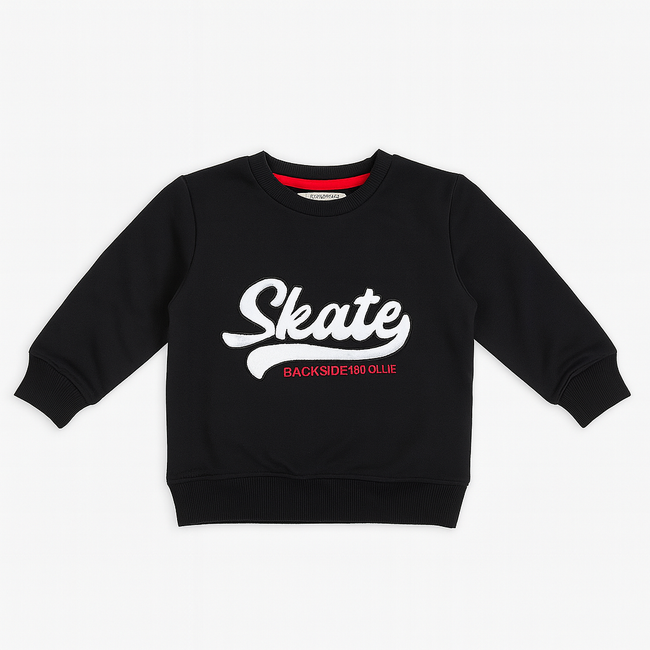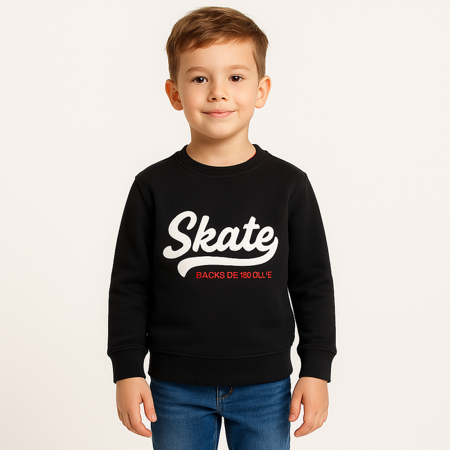 Upgrade your little one’s wardrobe with this stylish black crewneck sweatshirt featuring bold “Skate” text and a trendy red accent. Made with soft, breathable fabric, it ensures all-day comfort while keeping your child warm in winter. Designed for boys around 7 years, this sweatshirt pairs perfectly with jeans or joggers for a casual, modern look.