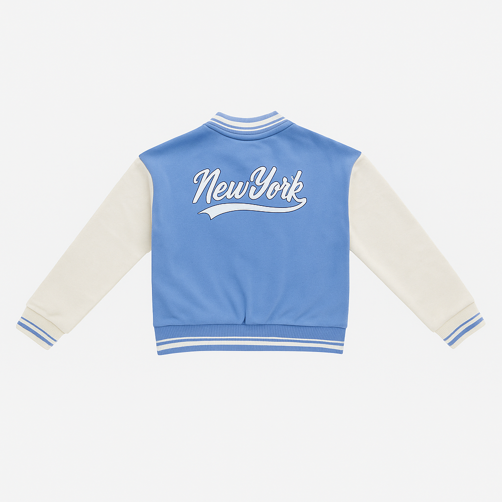 Kids Down Shoulder NY Baseball Varsity Jacket – Blue & White Trendy Look