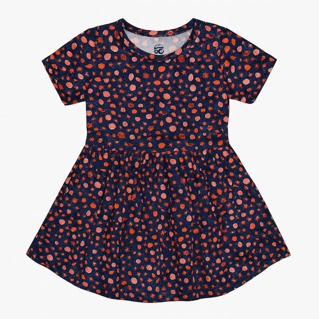 A charming knee-length frock designed for little girls, made from soft, breathable cotton fabric. It features a round neckline, short puff sleeves, and a fitted bodice that flows into a flared skirt for a playful, twirl-worthy look. Delicate lace trimming along the hem and sleeves adds a touch of elegance, while a matching satin bow at the waist provides a sweet finishing touch. Ideal for birthday parties, festive occasions, or casual summer outings.