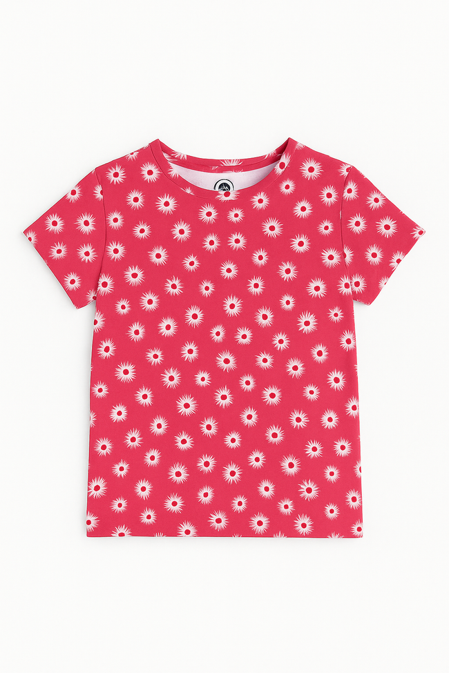 "Soft and stylish, this girls’ T-shirt is crafted from breathable cotton for all-day comfort. Featuring a flattering fit, vibrant colors, and durable stitching, it’s perfect for casual outings, school, or lounging at home. Easy to pair with jeans, skirts, or shorts — a must-have in every wardrobe."