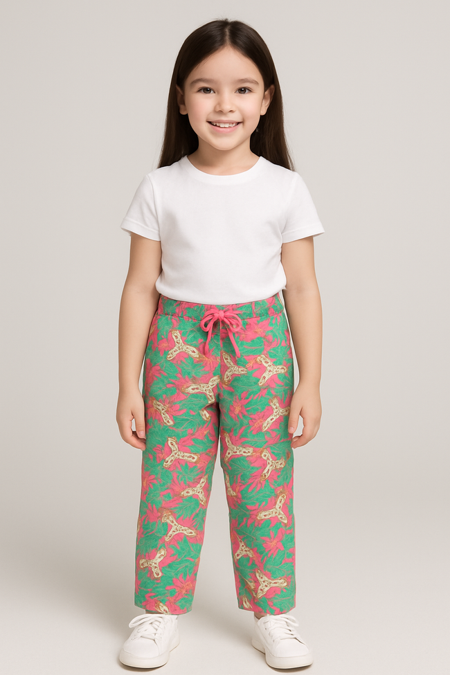 "Girls’ trousers made from soft, breathable fabric, designed for all-day comfort and ease of movement. Featuring a modern fit with an elastic waistband for a secure yet flexible feel. Durable stitching ensures long-lasting wear, while the versatile style makes them perfect for casual outings, school, or playtime. Easy to pair with tops, shirts, and tunics for a complete look."