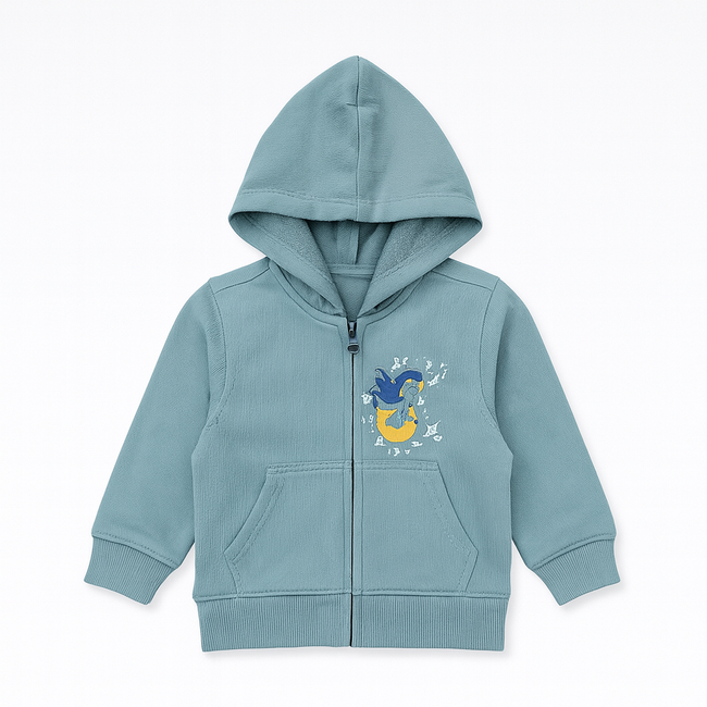 Kids’ Teal Zip-Up Hoodie – Soft Cotton with Fun Graphic Print