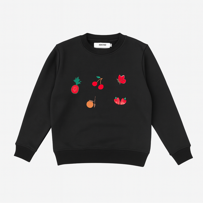 Girl Black Sweatshirt with Colorful Embroidered Fruits & Flowers