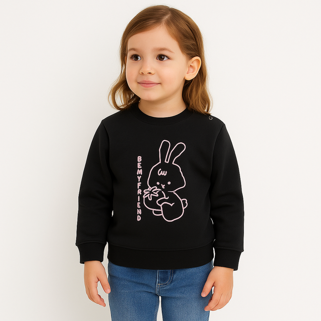 Girl Black Sweatshirt with Cute Bunny Print – “Be My Friend”