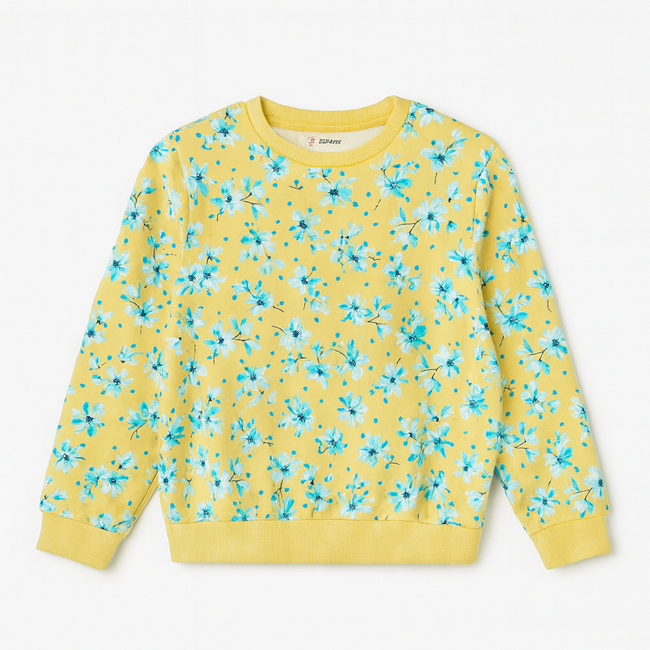 Girl Yellow Floral Print Sweatshirt – Soft Cotton Casual Wear