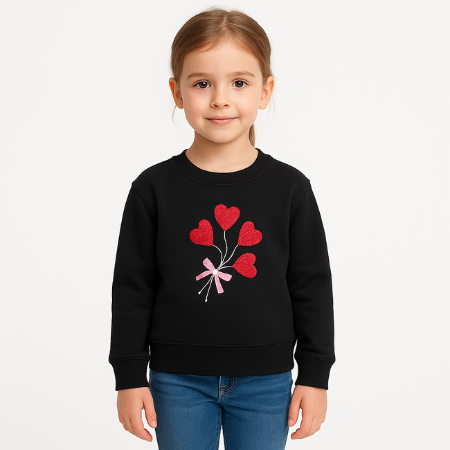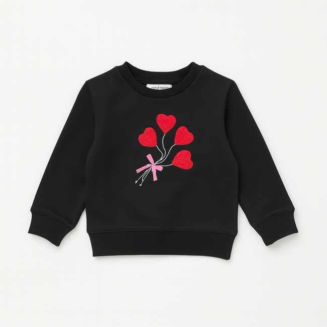 Girls’ Black Sweatshirt with Red Heart Balloon Print