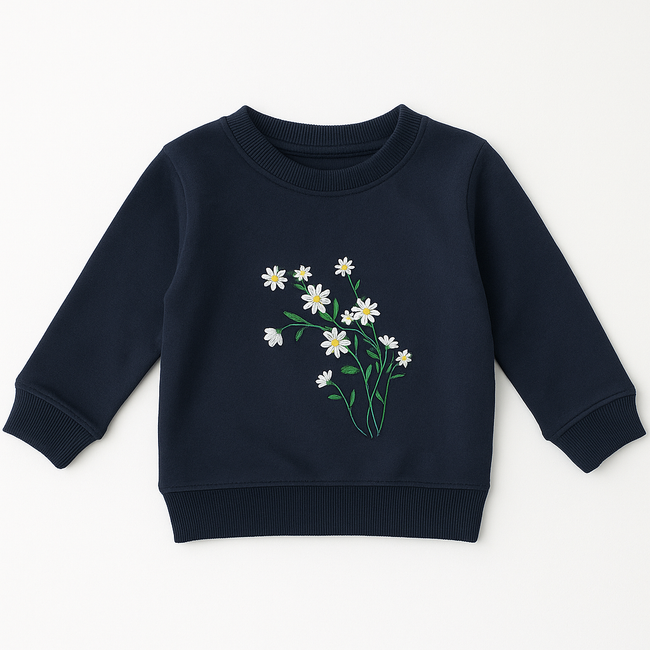 Girls Navy Blue Sweatshirt – Floral Embroidery